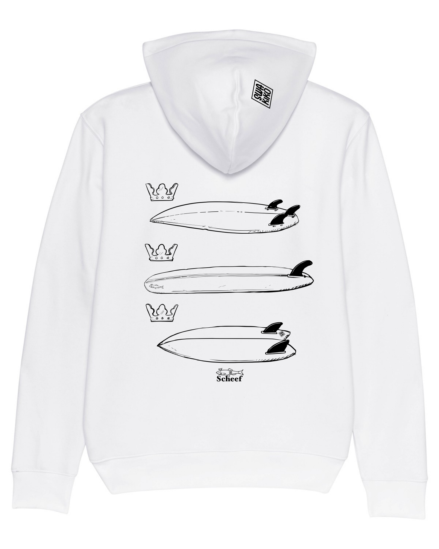 Ervaar het ultieme comfort en stijl met ons unieke hoodie, voorzien van een opvallend artwork van drie surfboards die de iconische vlag van Scheveningen met de drie zilveren haringen en kroontjes uitbeelden. Deze must-have voor elke surf- en strandliefhebber combineert een eigentijds design met hoogwaardige materialen voor een perfecte pasvorm en langdurig draagcomfort. Ideaal voor een dag aan zee of een ontspannen dagje uit, deze hoodie is een echte blikvanger. Ontdek de perfecte balans tussen mode en functionaliteit en maak je outfit compleet. Klaar om je garderobe een upgrade te geven? Klik op de bestelknop en voeg deze unieke Scheef hoodie vandaag nog toe aan je collectie!